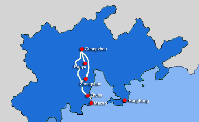 It takes 2 hours from Macao to Tong Sheng by taxi.